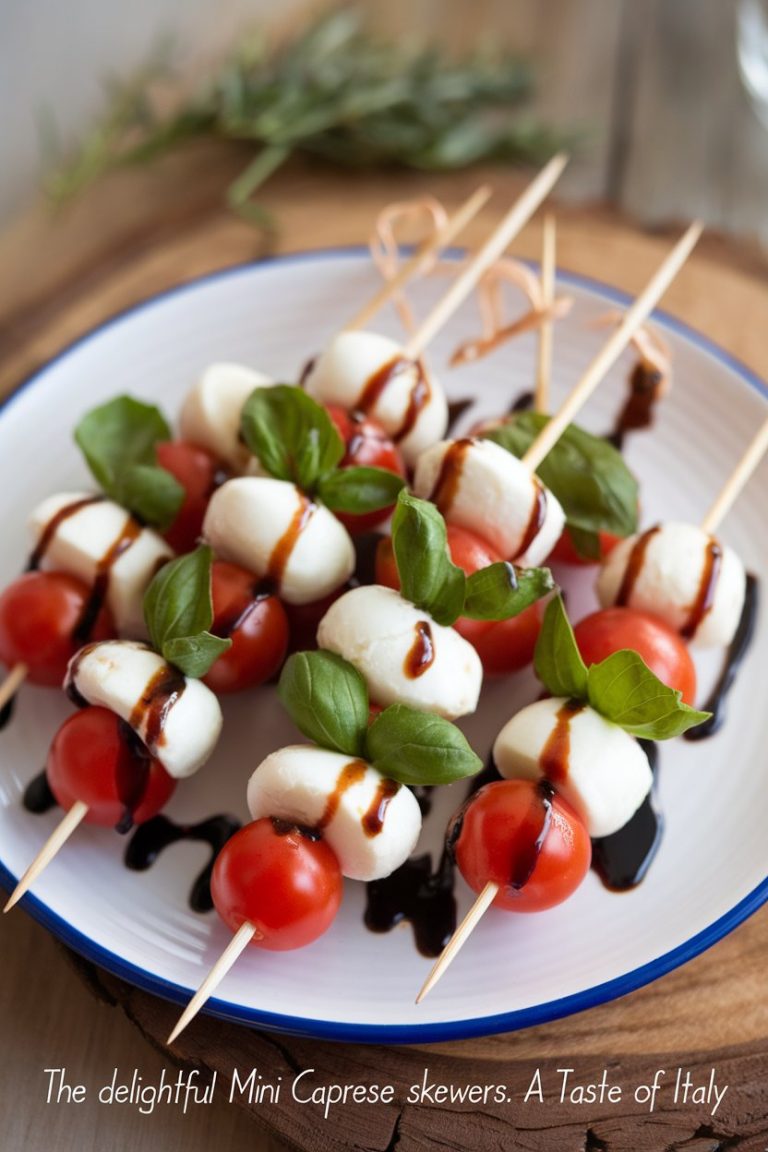 SnacksThe Delightful Mini Caprese Skewers: A Taste of ItalyMini Caprese Skewers are a delicious and easy appetizer made with cherry tomatoes, fresh mozzarella, basil, and balsamic glaze. Perfect for parties!Read MoreThe Delightful Mini Caprese Skewers: A Taste of Italy