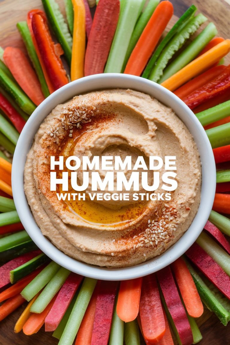 SnacksHomemade Hummus with Veggie SticksDelicious homemade hummus served with fresh veggie sticks for a healthy and satisfying snack or appetizer. Perfect for parties or everyday snacking.Read MoreHomemade Hummus with Veggie Sticks