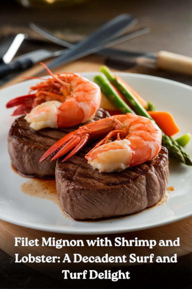 SteaksFilet Mignon with Shrimp and Lobster: A Decadent Surf and Turf DelightIndulge in a luxurious surf and turf experience with our succulent filet mignon topped with shrimp and lobster. Perfect for a special occasion.Read MoreFilet Mignon with Shrimp and Lobster: A Decadent Surf and Turf Delight