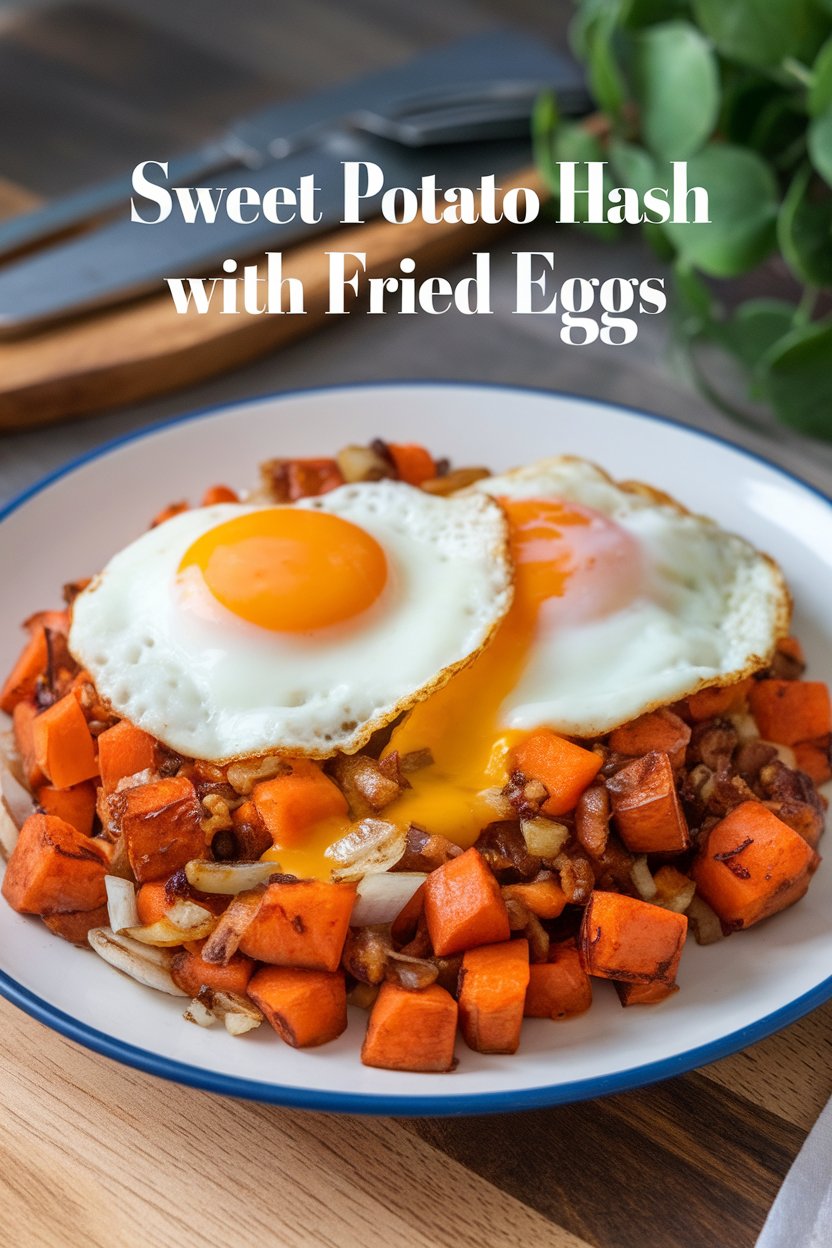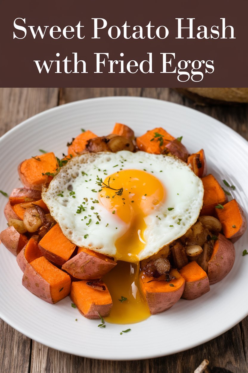 - Serve: Divide the sweet potato hash onto plates and top each serving with a fried egg. Season with salt and pepper to taste.