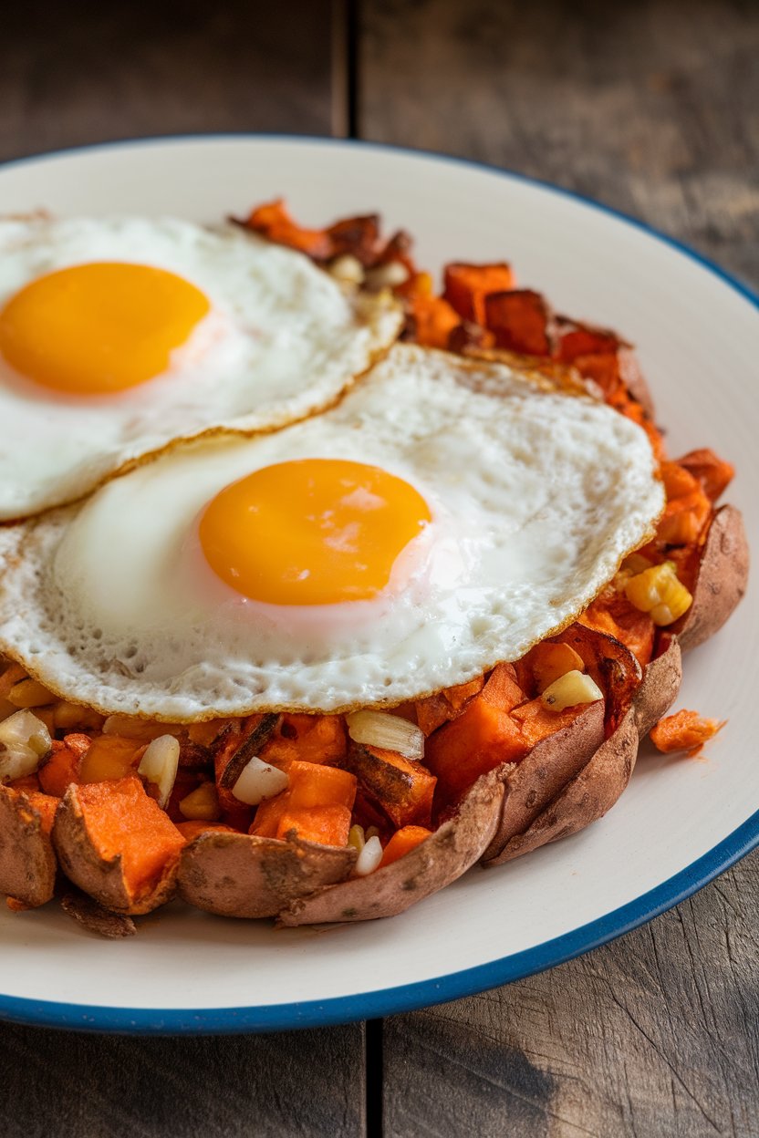 - Sweet potatoes are packed with nutrients, making this dish a healthy choice for breakfast.